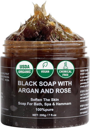 - Expérience Royale du Hammam : Inspiré des rituels de spa royaux marocains, ce savon noir artisanal adoucit les pores, élimine les impuretés en profondeur et laisse la peau soyeuse—idéal pour tout kit de bain marocain.