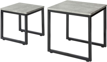 Matériau : copeaux avec dessus aspect naturel + cadre en métal. Dimensions (L x l x H) : grande table : L50 x P50 x H50 m ; petite table : L40 x P40 x H40 m. Poids : 11 kg. Couleur : aspect naturel. Poids supporté : 20 kg/table, total 40 kg/2 tables