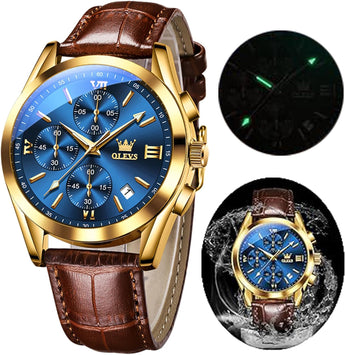 ⌚【Design unique et tendance】Les montres sont l'un des rares ornements sur les hommes. Les montres OLEVS sont disposées avec des lignes simples et des arcs naturels, une lunette dorée élégante avec un design unique de 3 petits chronographes (chronographe 60 minutes, sous-cadran 1/10 seconde, chronographe 60 secondes) dans un grand cadran blanc avec index doré (1,58"/40 mm). La présentation diversifiée d'un gentleman, libre et facile, profonde, sage et distinctive est pleinement révélée.