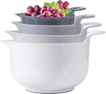 - 🍲 Polyvalent et pratique : Idéal pour mélanger farine, sauces, salades, pâtes ou desserts. Chaque bol dispose d’un trou de versement pour un transfert facile et sans éclaboussures.