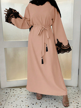 Robe Abaya arabe à manches en dentelle épissée pour femme