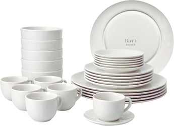Comprend tout le nécessaire pour le petit-déjeuner, déjeuner et dîner : assiettes, bols et plats. Idéal pour familles, couples ou invités. Parfait pour un usage quotidien ou pour les occasions festives.