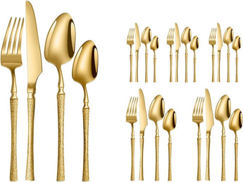 - 🌟 Service complet pour 6 personnes : Comprend 6 couteaux à steak, 6 fourchettes, 6 cuillères à soupe et 6 cuillères à dessert. Parfait pour un usage quotidien ou pour accueillir vos invités avec style.