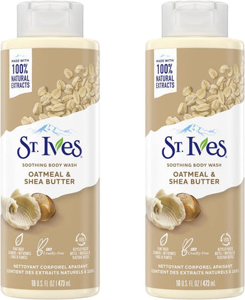 Le nettoyant corporel apaisant à l'avoine et au beurre de karité St. Ives apaise l'esprit, le corps et l'âme tout en nettoyant la peau avec une mousse somptueuse et savonneuse.